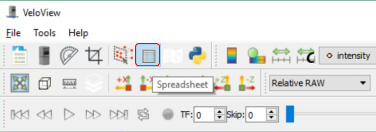 2. 다음으로 Spreadsheet 버튼을 누르면 Point들의 정보를 볼 수 있습니다. 그런데 모든 Point들에 대한 정보를 보여 줍니다.