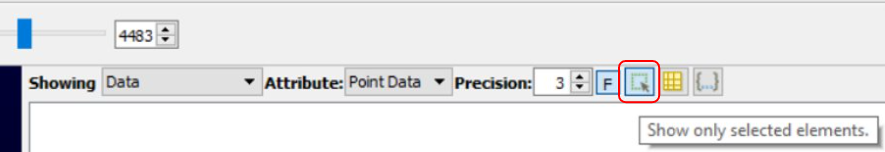 3. 마지막으로 Pop된 Spreadsheet의 위쪽 버튼 중 Show only selected elements를 누르면 선택된 Point에 대한 정보를 볼 수 있습니다.